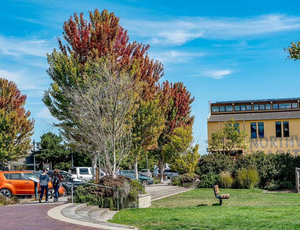 Red and orange hues mean change is coming as shown on these trees on Water Street next to Pope Marine Park in downtown Port Townsend.