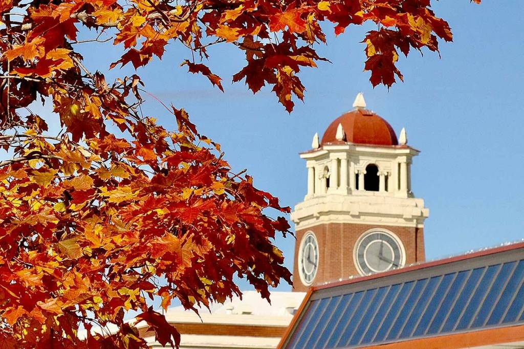 Fall colors pop out in their full glory, framing the Clallam County Courthouse clock in the background. (Dave Logan/for Peninsula Daily News)