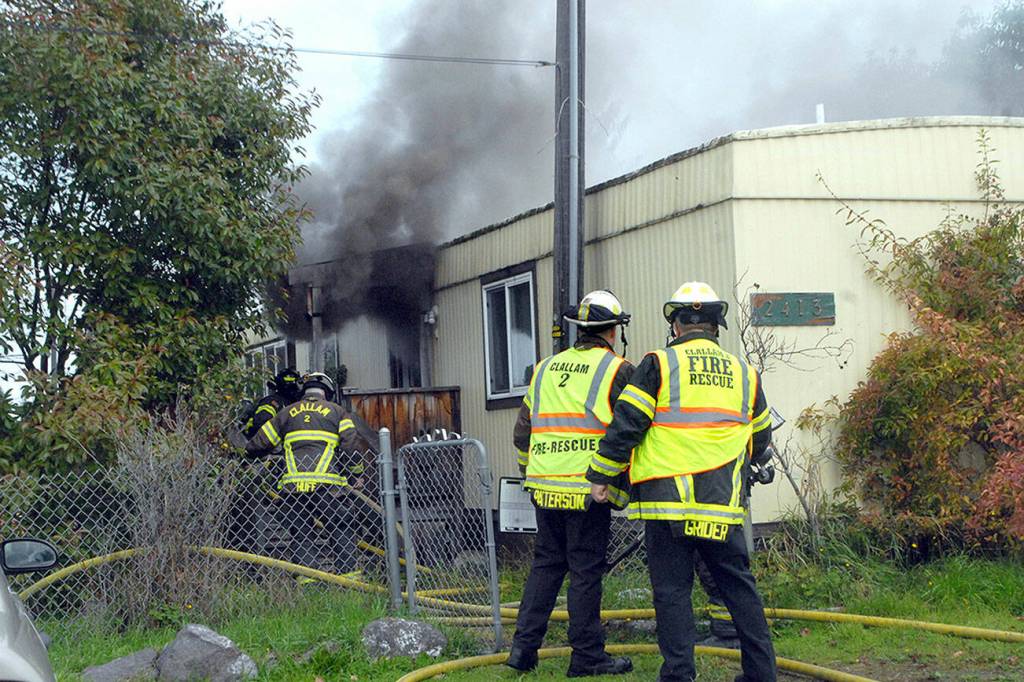 The fire in the 2400 block of East Pioneer Road was extinguished in about 20 minutes after Clallam 2 Fire-Rescue was dispatched at 1:42 p.m. Tuesday, said Chief Jake Patterson, who added that all units had cleared the scene by 2:31 p.m.