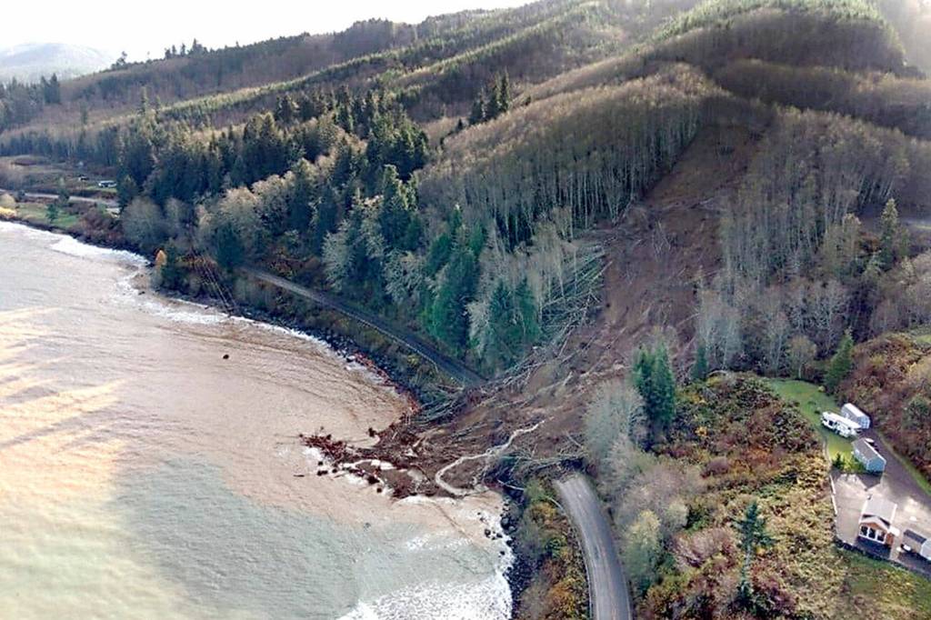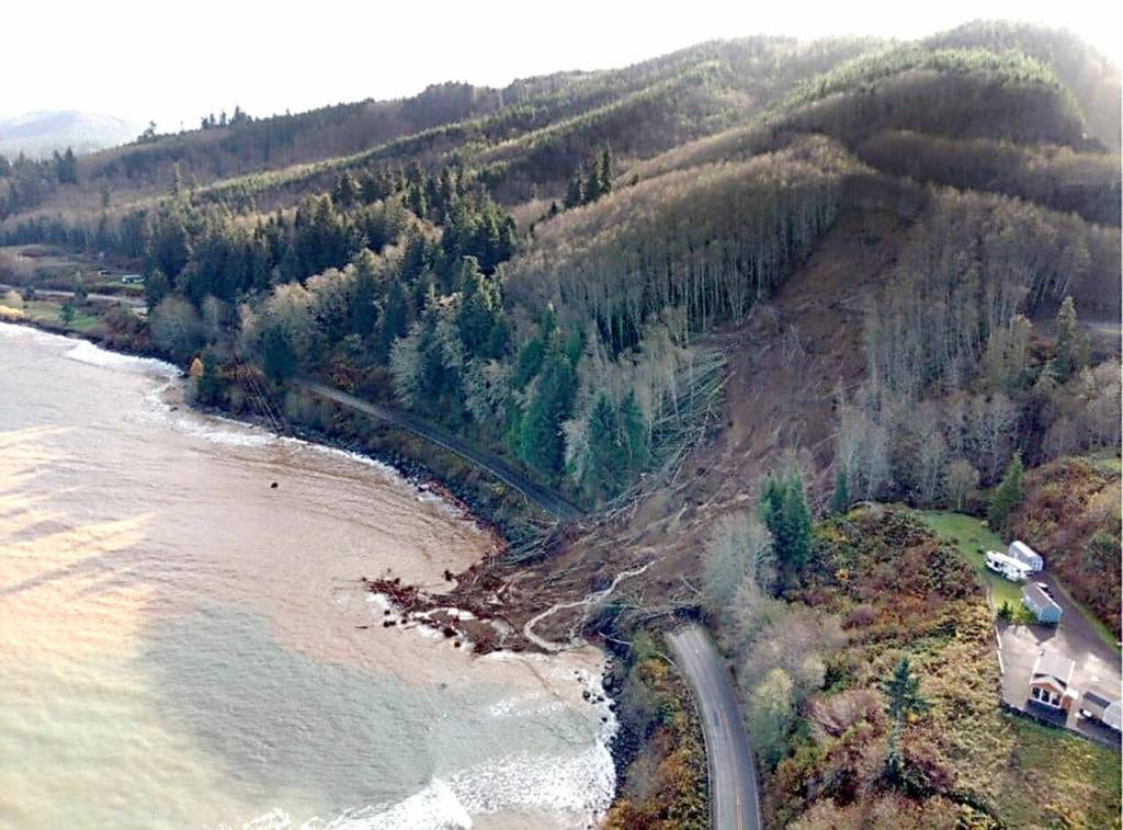 A major landslide on state Highway 112 near milepost 15.8 broke a water main into Sekiu, depriving residents of fresh water.