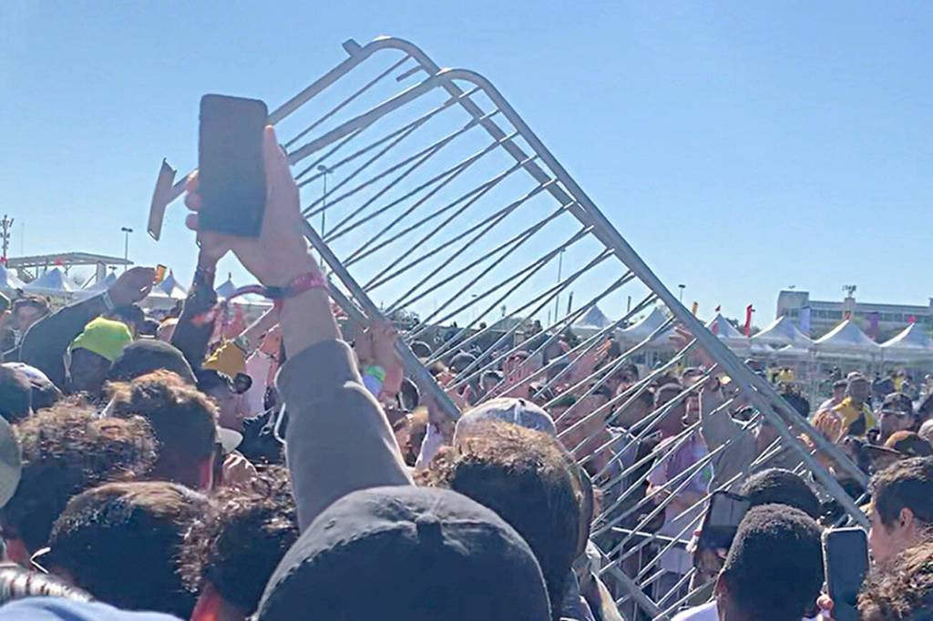 Upon arrival for Astroworld’s first planned day at about 10:30 a.m., the friends said they saw gates were broken down and found entrance security was lax. Inside, they ventured toward merchandise tables, where things became unruly.