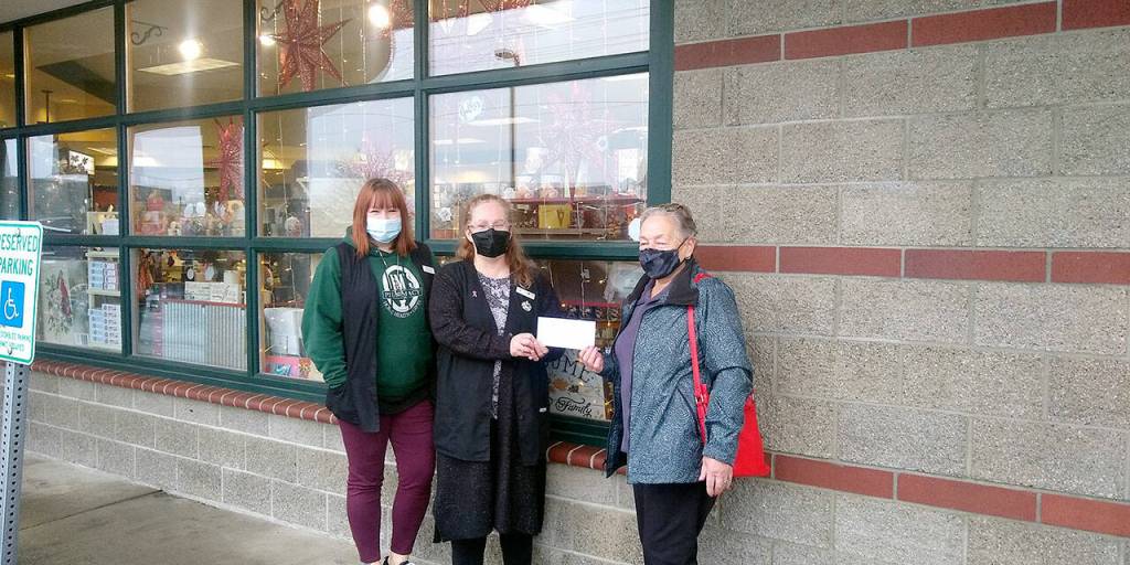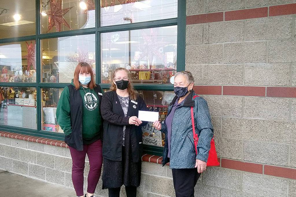 Operation Uplift was the October recipient of Jim’s Cares Monthly Charity at Jim’s Pharmacy in Port Angeles. The non-profit support group, established in 1983 to support breast cancer patients, now supports community members with any type of cancer. Staff and customers at the pharmacy raised more than $813 to support the program. Pictured, from left, are Jessica Thompson, Lori Ambrose and Lori Oakes.
