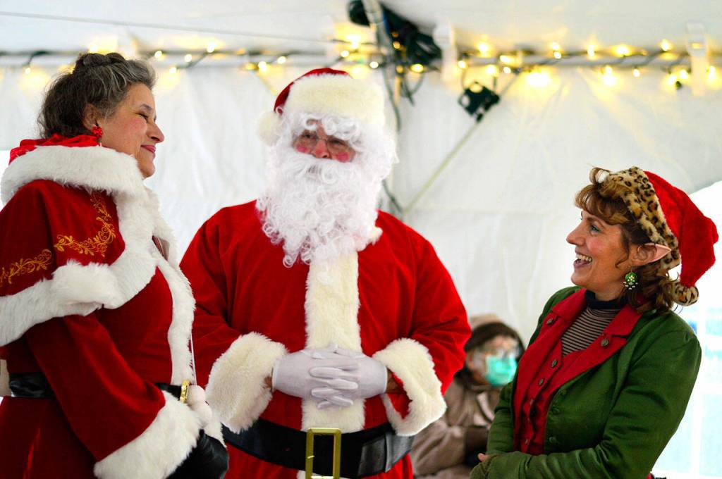 Dashiell Lemay, 4, supported by mom Amy Lemay of Port Townsend, fist-bumped with Santa Claus under the Tyler Street Plaza tent in Port Townsend on Saturday afternoon during the Port Townsend Main Street’s seasonal activities that included a tree-lighting at dusk.