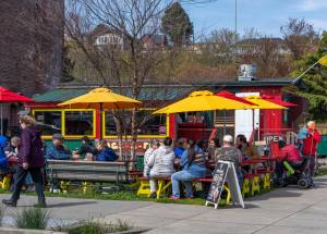 Hot water is available, as well as instant coffee, cocoa and soup to mix into it, Dorwick said. Snacks are offered — none gluten-free, he said — and a 25-pound bag of dog food is on hand for those with pet dogs. Power strips for charging phones and a portable toilet are on site.