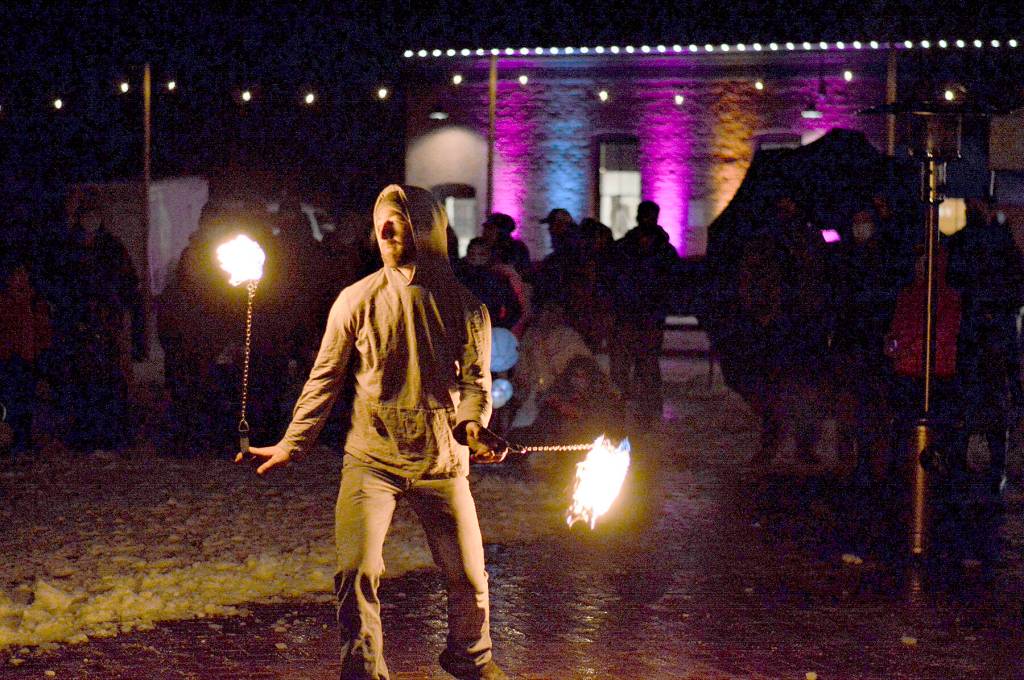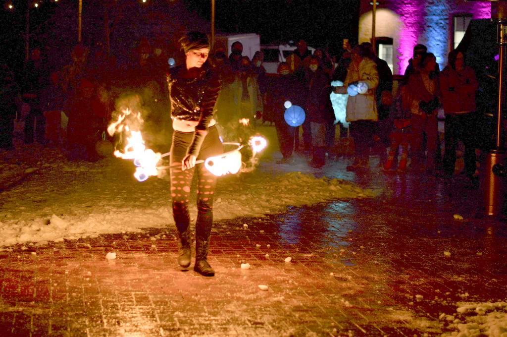 Alex Eisenberg of Port Townsend did some fire dancing during the First Night festivities Friday at downtown’s Pope Marine Park. He’s part of an ensemble that includes Ashley Kehl of Port Townsend and Cristy Christensen of Bellingham.
