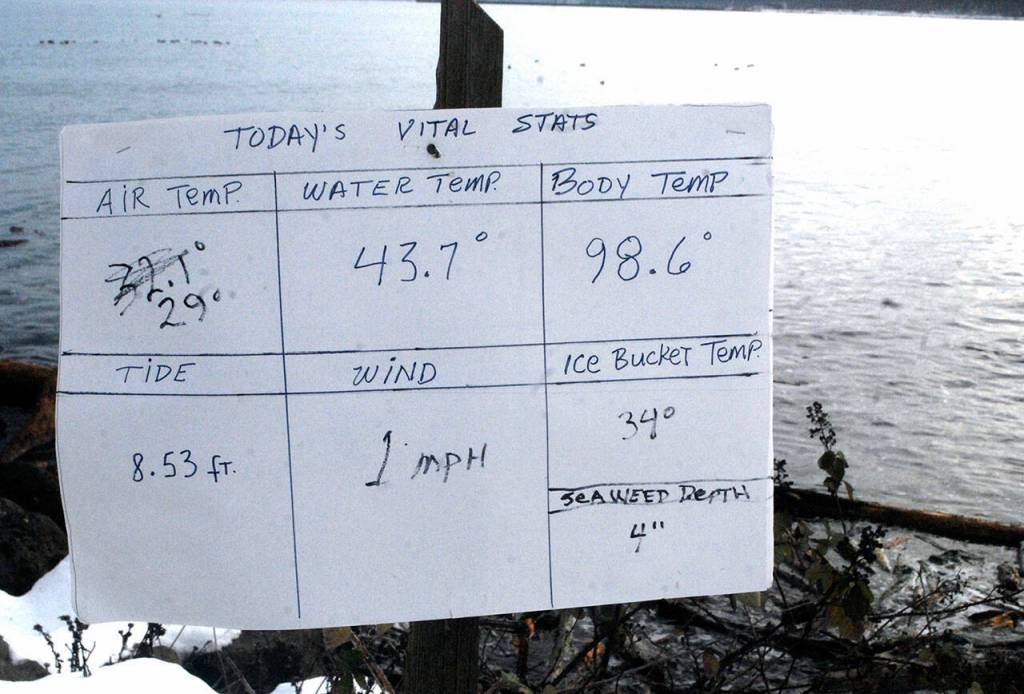 Polar bear dippers wade in and out of the chilly water at Hollywood Beach in Port Angeles during Saturday’s annual New Year’s Day plunge. Dozens of people braved sub-freezing air temperatures to ltake part in the ritual that also was indulged by others on the North Olympic Peninsula at Lake Pleasant and Nordland.