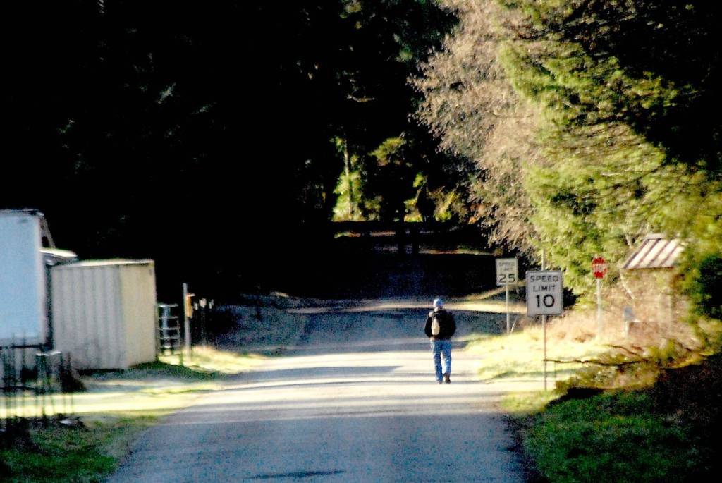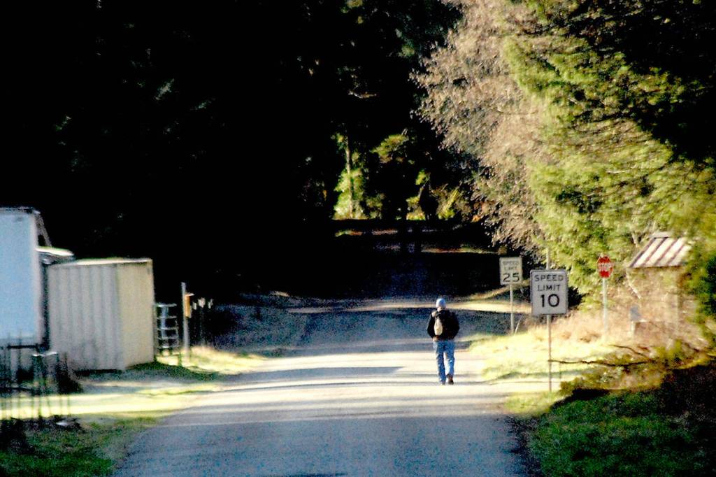 A hiker walks up Olympic Hot Springs Road in the Elwha Valley in Olympic National Park on Saturday.