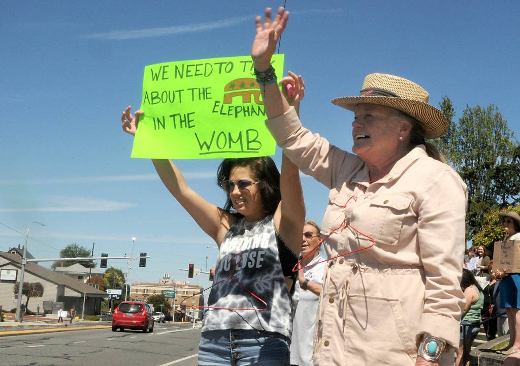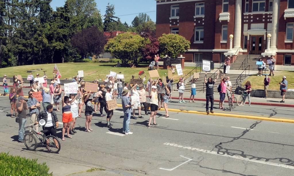 People of all genders and ages gathered on the North Olympic Peninsula over the weekend to protest Friday’s U.S. Supreme Court ruling overturning Roe v. Wade, which removes the federal constitutional right to abortion and returns the issue to state legislatures.
