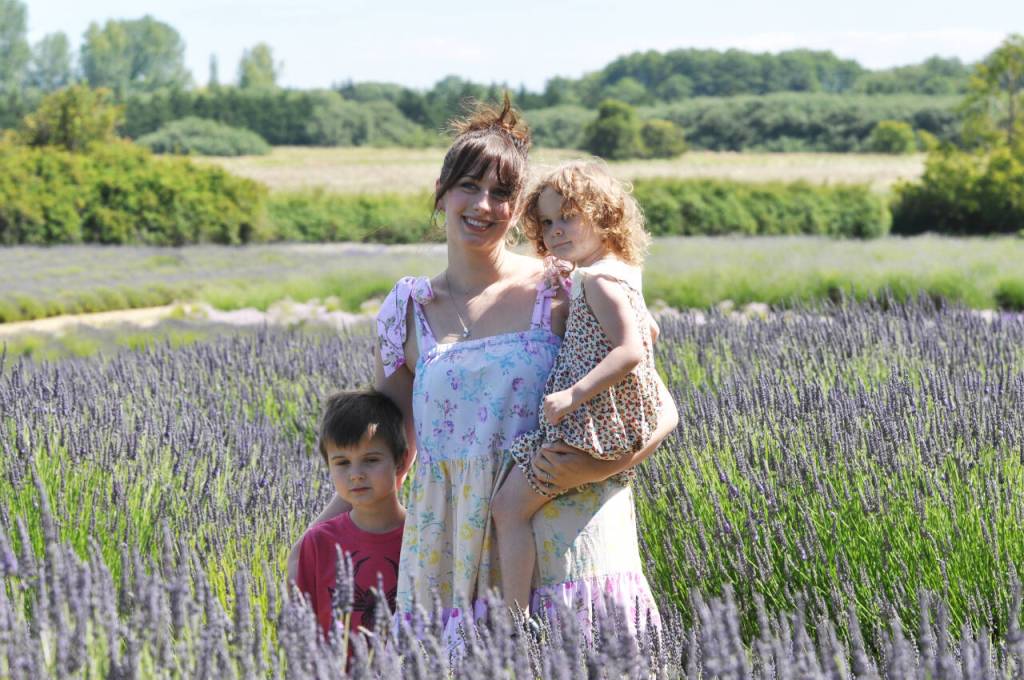 Michael Mangiameli, with Sebastian, 5, and Eleanora, 2, of Sequim enjoy a day at Jardin du Soliel Lavender Farm & Gift Shop on July 15. (Michael Dashiell/Olympic Peninsula News Group)