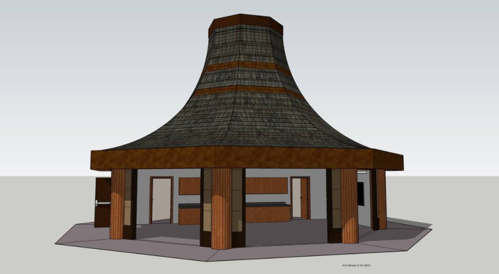 The building’s ceiling and columns will be constructed of unpainted, red cedar.