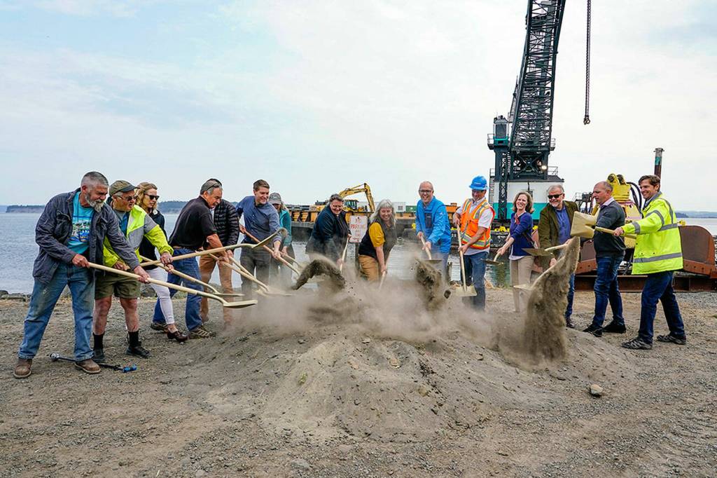 City of Port Townsend, Jefferson County and Port of Port Townsend officials, a representative from Orion Marine Contractors and others participated in the shovel and sand rite on Wednesday afternoon.