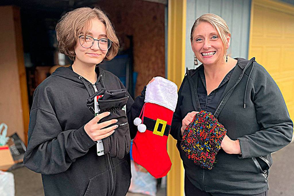 For the second year, River Jensen, left, and her mom Anna Larsen plan to use stockings for River’s Christmas Project to supply toiletries to local homeless people and others in crisis. River, now 16, started the project seven years ago. (Matthew Nash/Olympic Peninsula News Group)