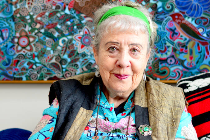 At home in Port Angeles, Gallagher reminds a visitor that her feet are resting on boards laid by her parents, Leslie and Georgia Bond.