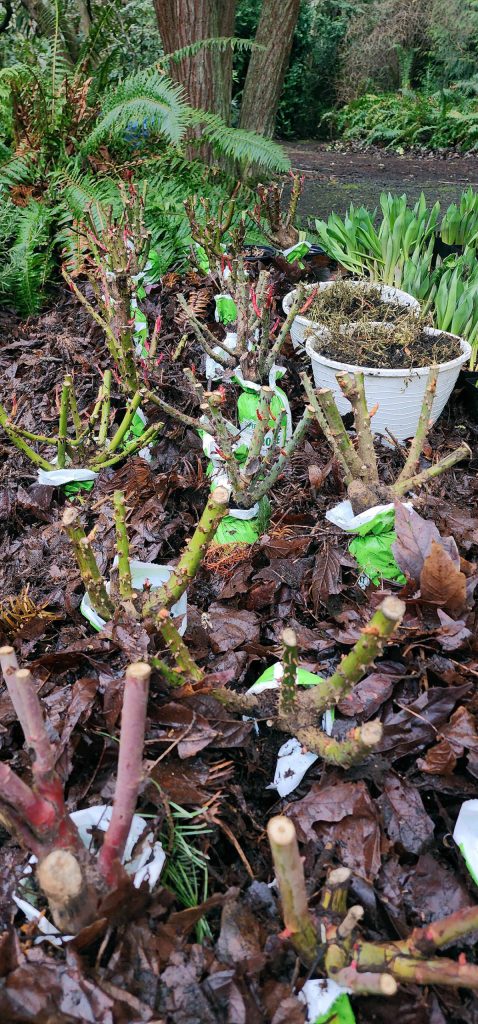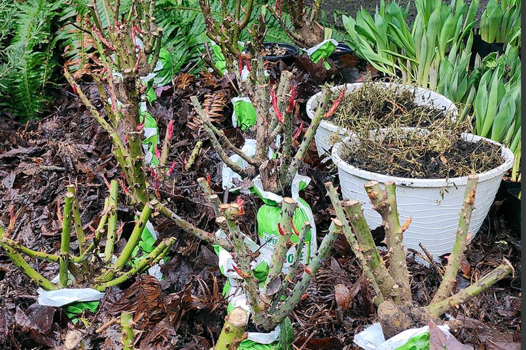 The next 6 weeks are bare-root season, and remember, most of the packaged roses, trees and ornamentals you find now are bare-root items packaged in plastic and wood chips.