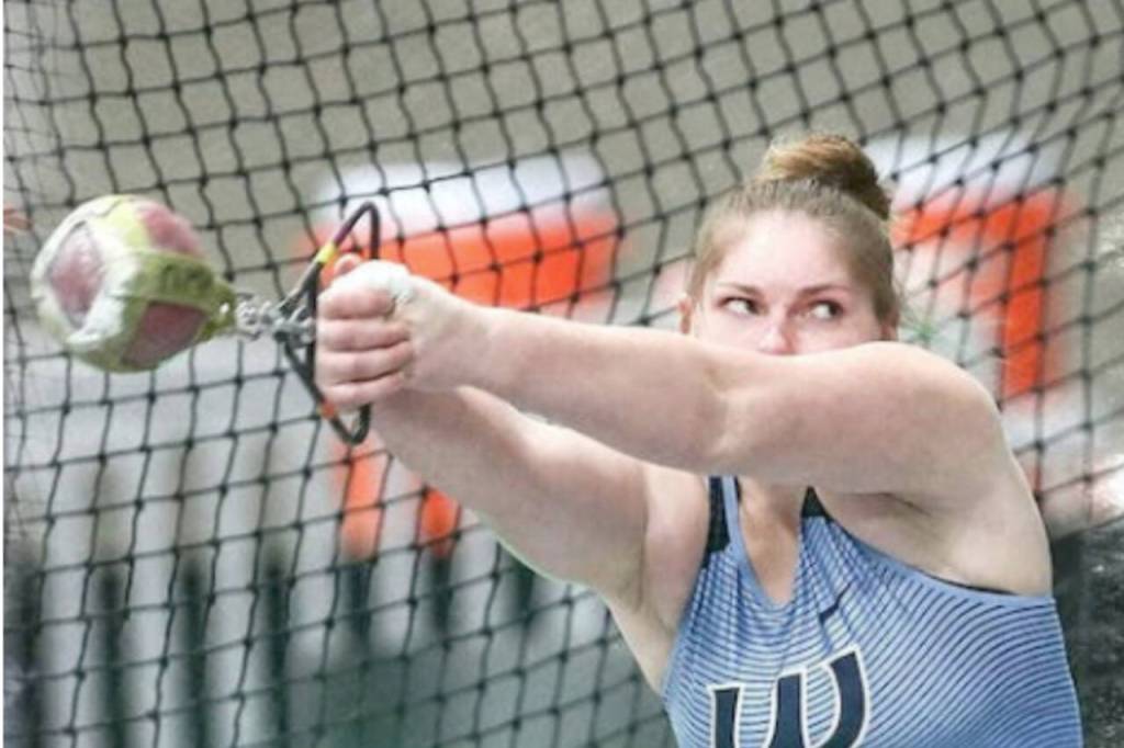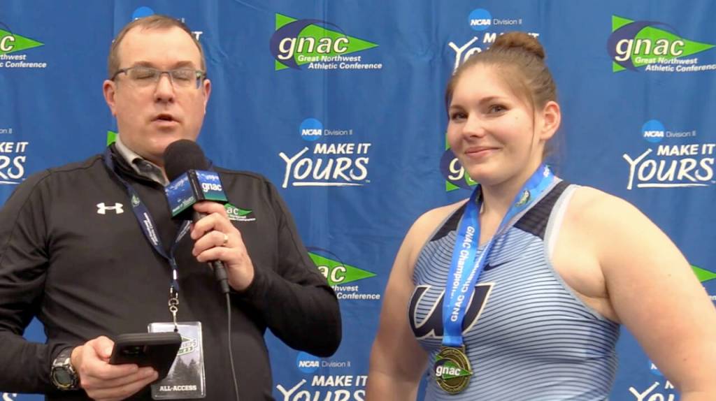 It was her second conference championship this year. In the spring, she won the hammer throw in the GNAC outdoor championships with a throw of 51.84 meters (170 feet, inch). She won that event by more than 11 feet and dominated all spring in the hammer, winning the event at four outdoor meets. She begins the spring outdoor season next month.
