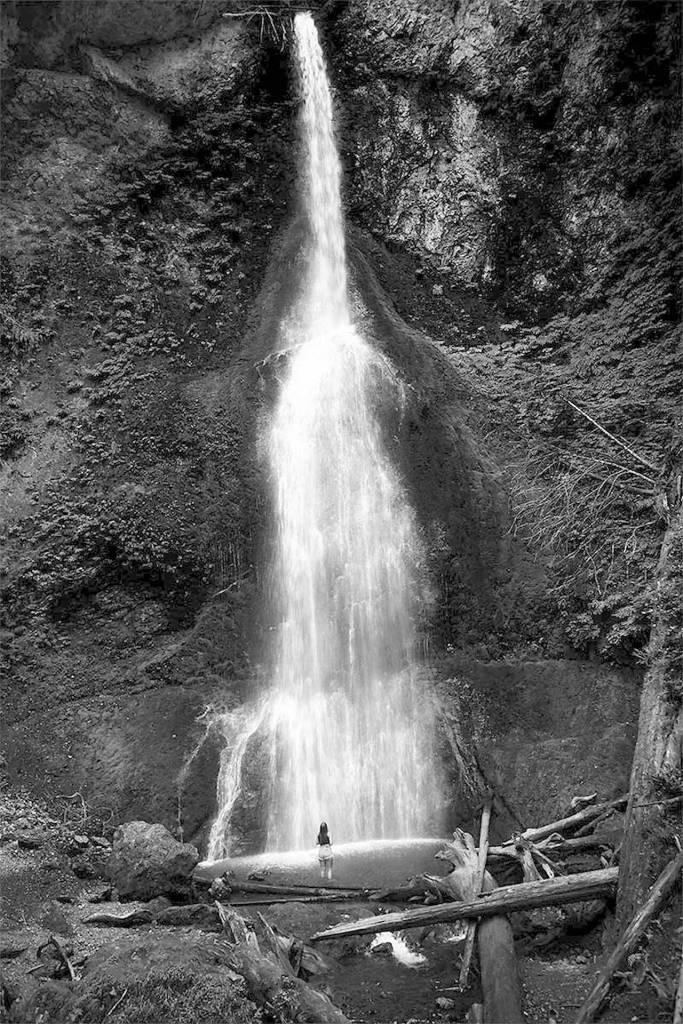 And Steck’s photo, “Woman and Waterfall,” turned out just as she hoped. The image of Marymere Falls towering above a lone woman was accepted into the “Wet: Reflections on Water” photography exhibition. Then it won her the $500 Curator’s Choice Award.