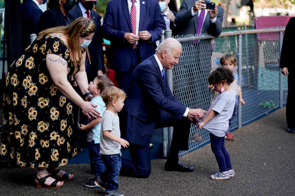 The footage shows Biden talking to the children at the playground and later giving the child in the photo a hug.