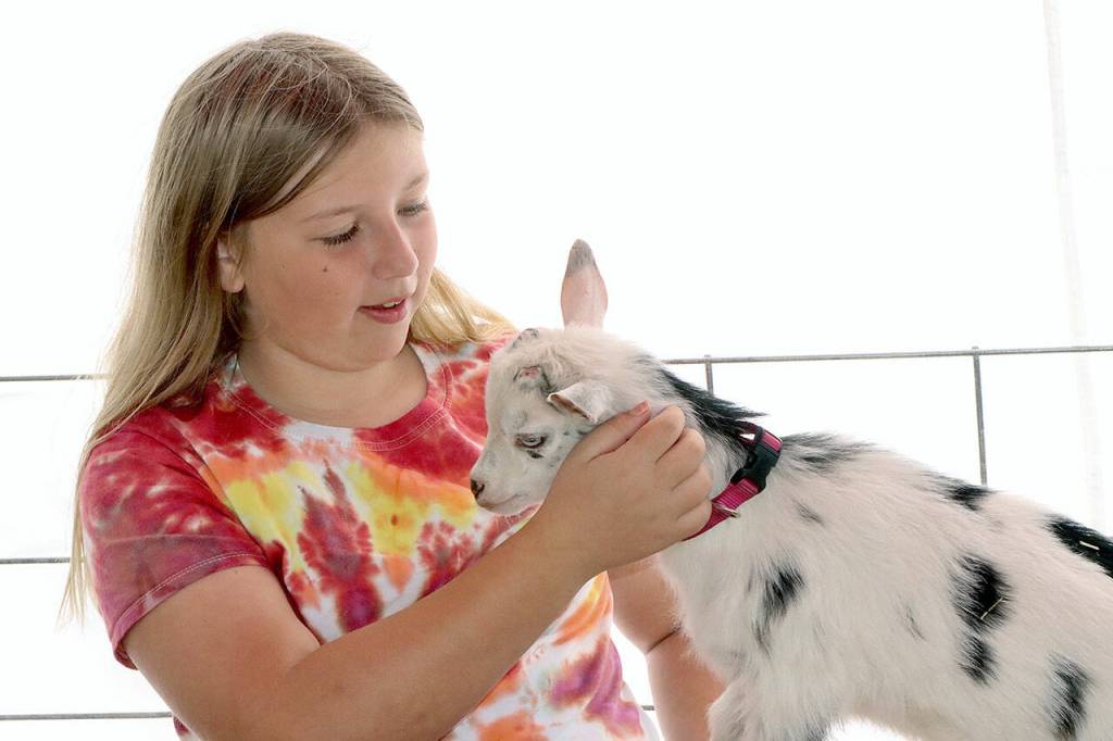 Aggy Huff of Port Angeles holds “Dallas” a Nigerian dwarf goat at the annual Shepherd’s Festival held at the Sequim Prairie Grange.