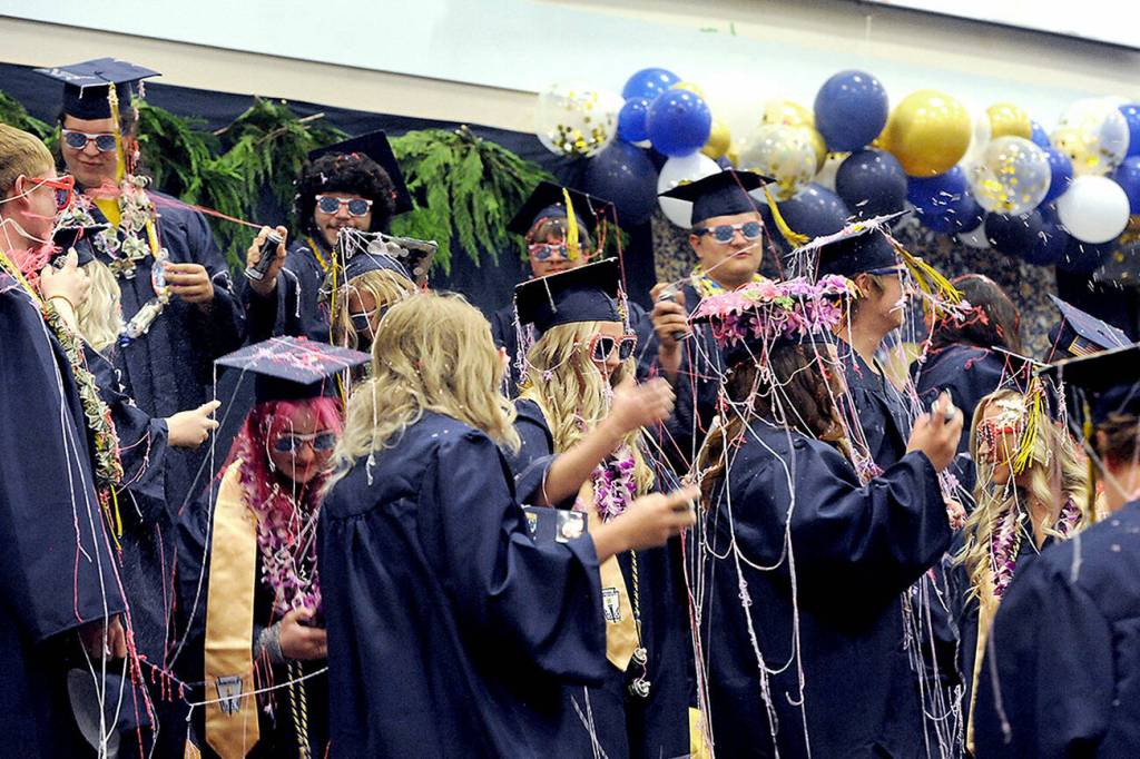 The Forks High School Class of 2023 begins to celebrate at the conclusion of the Commencement Ceremony Saturday afternoon in the Spartan Gym.