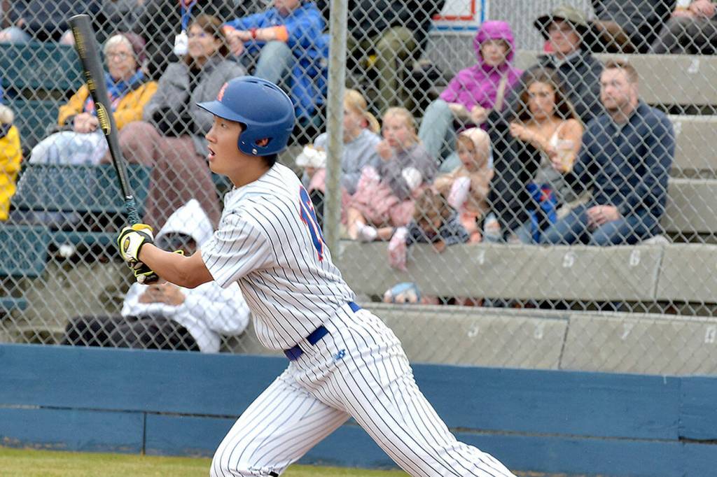 Lefties shortstop B.Y. Choi bats against Springfield early this season at Port Angeles Civic Field. Choi, who also played in Port Angeles in 2022, was drafted this week by the San Diego Padres. (Keith Thorpe/Peninsula Daily News)