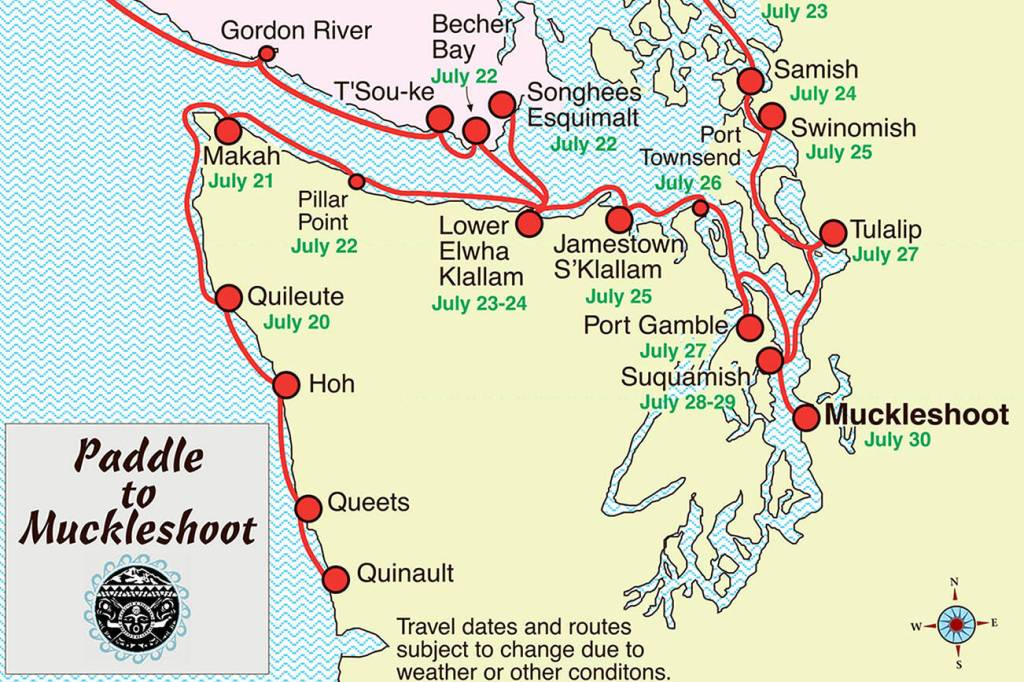 For the first time since 2019, the intertribal canoe journey is returning to the Pacific Northwest and includes multiple stops along the North Olympic Peninsula as crews make their way to the Muckleshoot Indian Nation near Auburn.