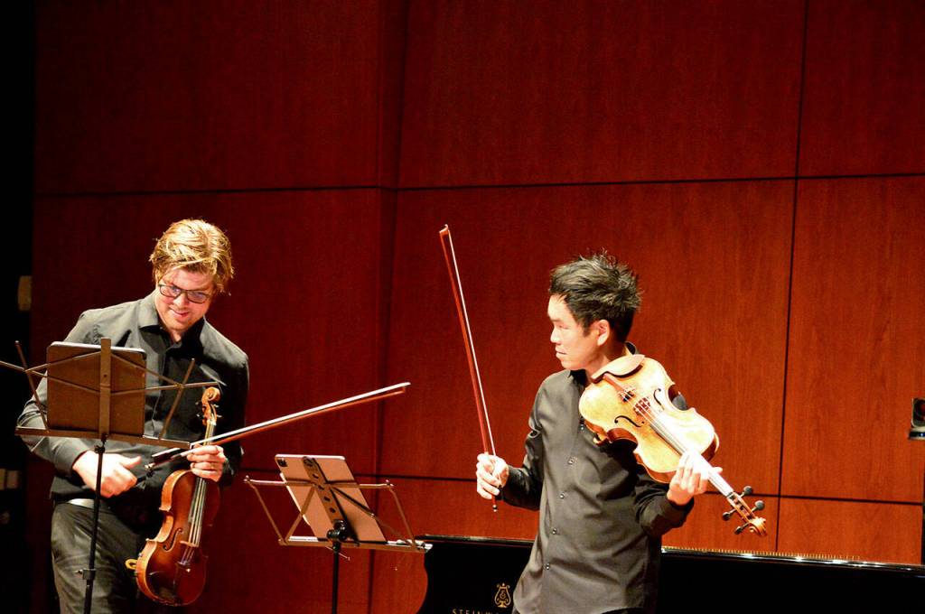 Garlick and O’Neill, who grew up together in Clallam County, have moved around the country: Garlick lives in St. Paul, Minn., where he teaches and performs, and O’Neill is in Boulder, Colo., where the Takacs Quartet is based.
