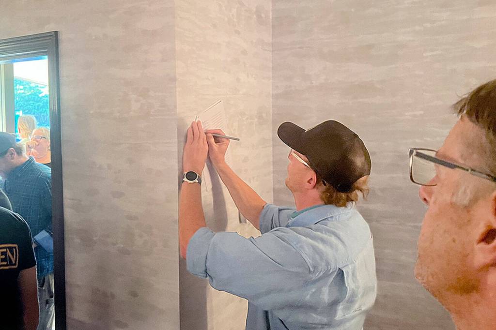 Eric Coufal signs a letter urging Olympic National Park officials to ensure access to Hurricane Ridge this winter. Locals have been concerned about winter access after the ridge’s day lodge burned down in May. A local coalition held a meeting at the Red Lion Hotel in Port Angeles on Wednesday to discuss the situation. (Peter Segall/Peninsula Daily News)