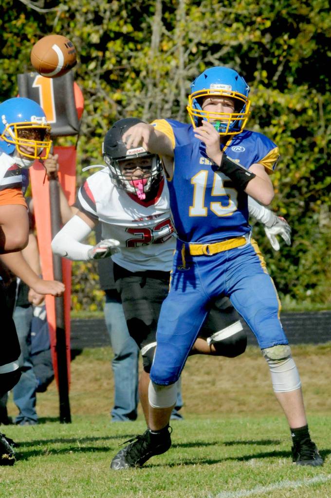 Henry Bourm (15) will be sharing quarterback duties with Conner Bauers for the Crescent Loggers. (Keith Thorpe/Peninsula Daily News)