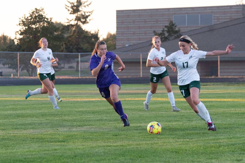 The Riders limited Sequim star Taryn Johnson to one outstanding run toward goal in the first half that ended with a shot wide of the mark. Port Angeles’ Maeve Croteau sent a free kick from right-to-left toward goal, but the ball bounced off the bar.