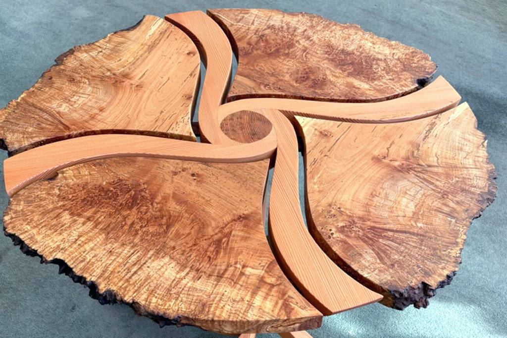 His functional art designs are inspired by James Krenov, Sam Maloof and, he added, Mother Nature.