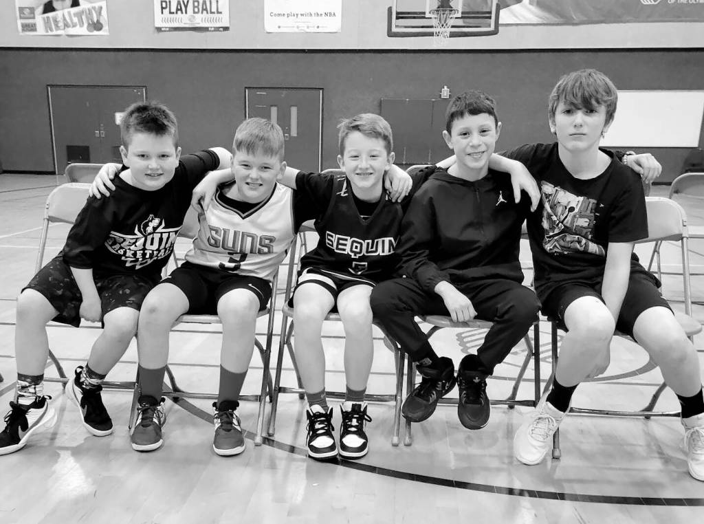 Snow and ice may have forced a delay but the Sequim Elks Lodge recently held its National Hoop Shoot competition at the Sequim Boys & Girls Club. Contestants included, from left, Bennett Castell, Grayson Castell, Roman Bacchus, Maks Lopez and Luca Blake.