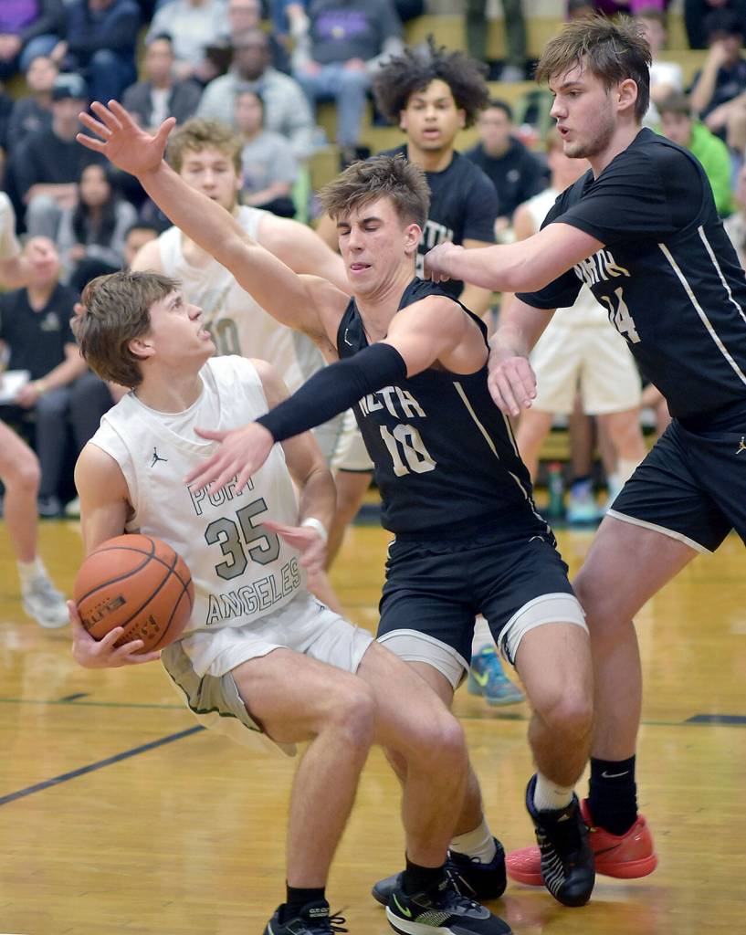 Down 74-71, Port Angeles was unable to get off a shot on its final possession, as tight defense by North Kitsap forced a Riders’ turnover — a sudden ending to a classic high school basketball game.