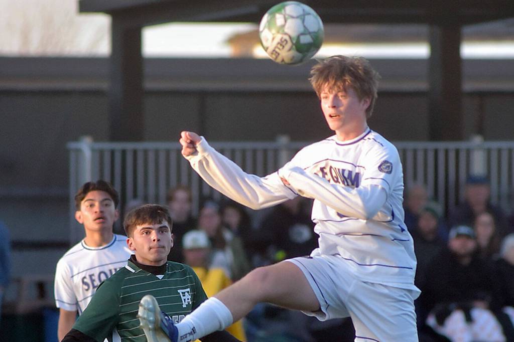 “Kanyon collected the flicked header in behind the Sequim defense at the top of the penalty box and lobbed his shot over Sequim goalie Nolan Valenzuela as he came out,” Riders coach Chris Saari said.