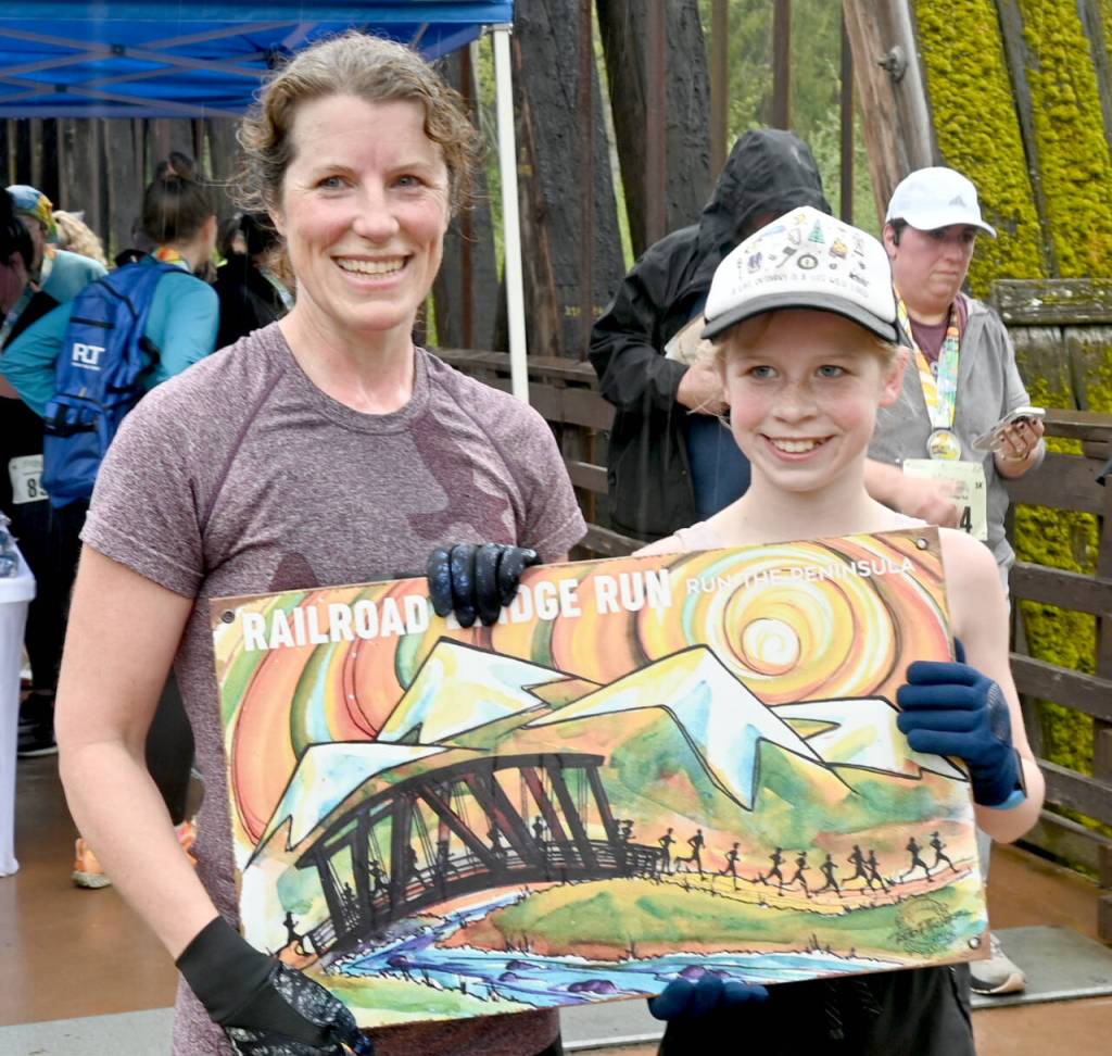 Eleanor’s mother, Laura Gould, is also an accomplished distance runner. She was a top women’s placer in the North Olympic Discovery Marathon in the 2000s, and since then, she has won multiple Run the Peninsula plaques, with she and Eleanor finishing one-two a few times. She won the Sequim Railroad Bridge 10K in dominating fashion in her own right, taking first by an astounding nine minutes, as she and Eleanor have made it their goal to win all 10 Run the Peninsula metal posters.