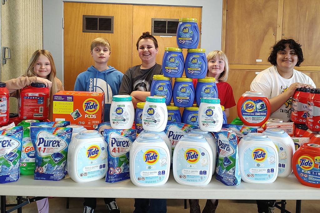 PORT ANGELES — Guests at the shelter at Serenity House of Clallam County are well-supplied for laundry detergent for a few years, thanks to Peninsula youths.
