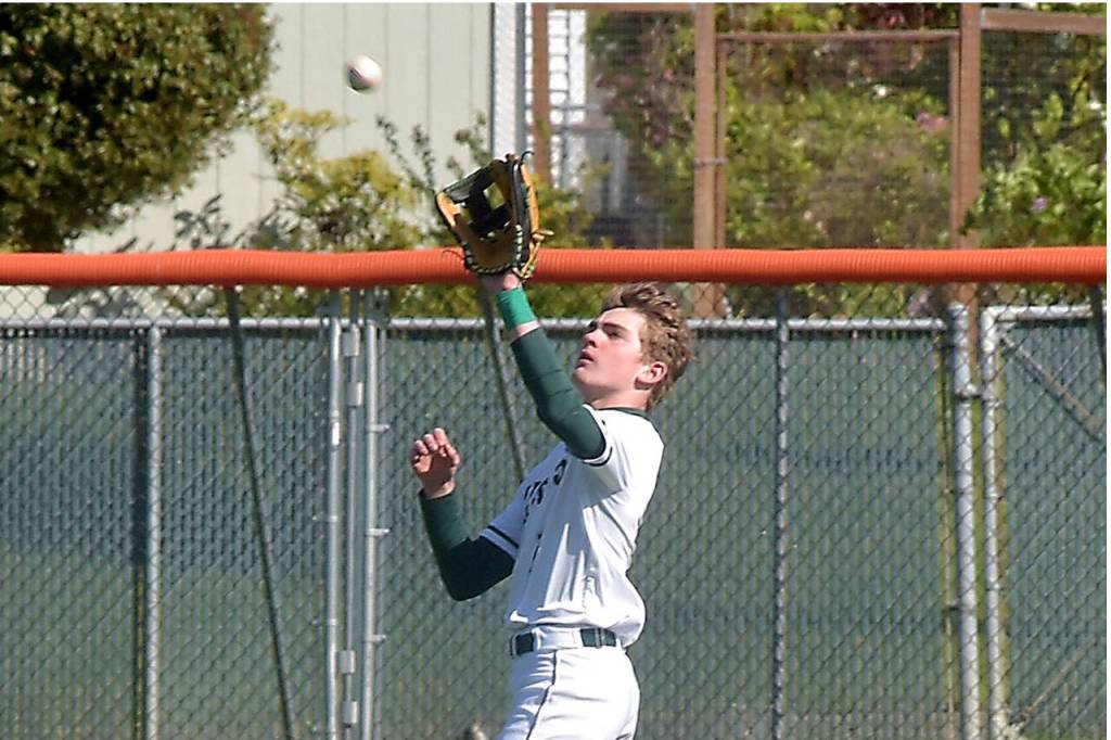 Port Angeles centerfielder Nathan Basden catches a high popup during Tuesday's playoff against Fife in Port Angeles.