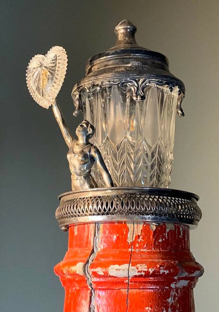 “Come Home” is an assemblage by Northwind Art School teaching artist Steve Parmelee. A basketball trophy is one of the ingredients. (photo courtesy Steve Parmelee)