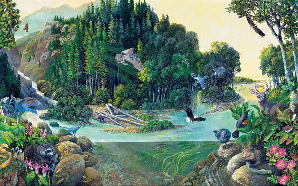 The exhibit is based on the removal of the Elwha and Glines Canyon dams and the subsequent restoration of the Elwha River ecosystem.