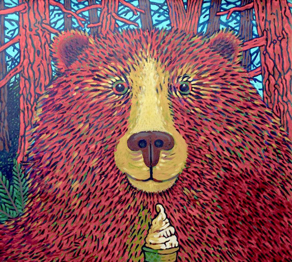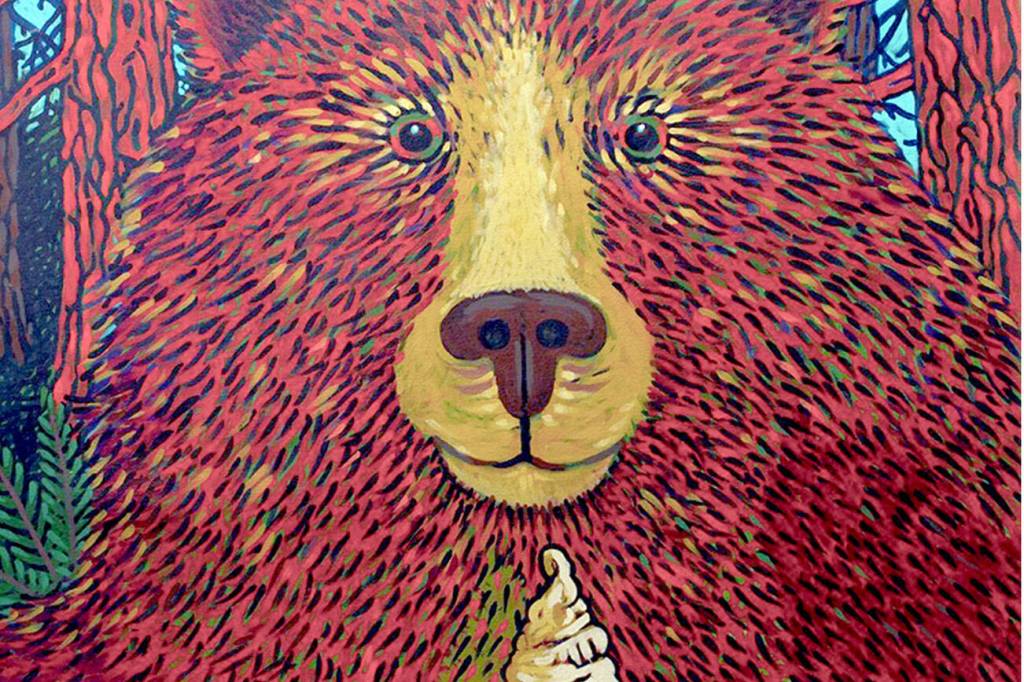 The exhibit features paintings that highlight Samuelson’s colorful and imaginative style. His work is known for its uplifting and creative themes that incorporate both the natural world and Samuelson’s imagination.