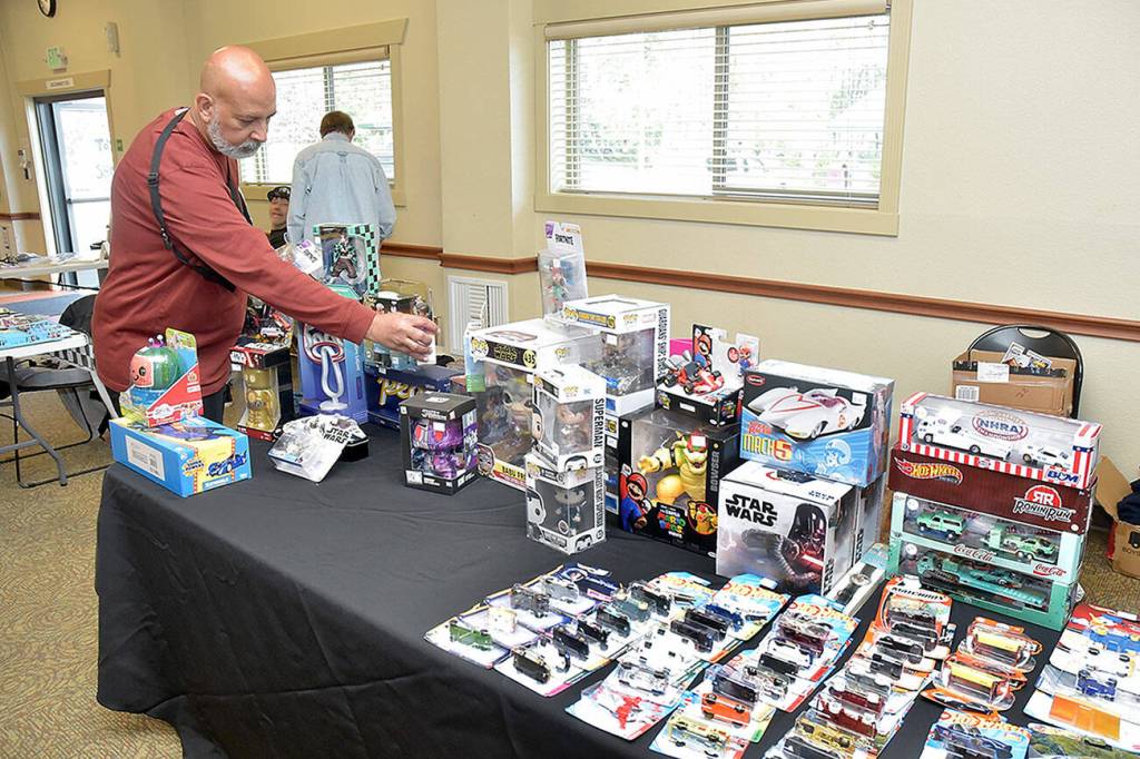 Paulo Leite of Port Angeles sets up a display of automotive and Star Wars toys at Saturday’s Olympic Peninsula Toy and Collectibles Show at Guy Cole Convention Center in Sequim. The exhibition featured a wide variety of toys and collectible items for display, sale or trade.
