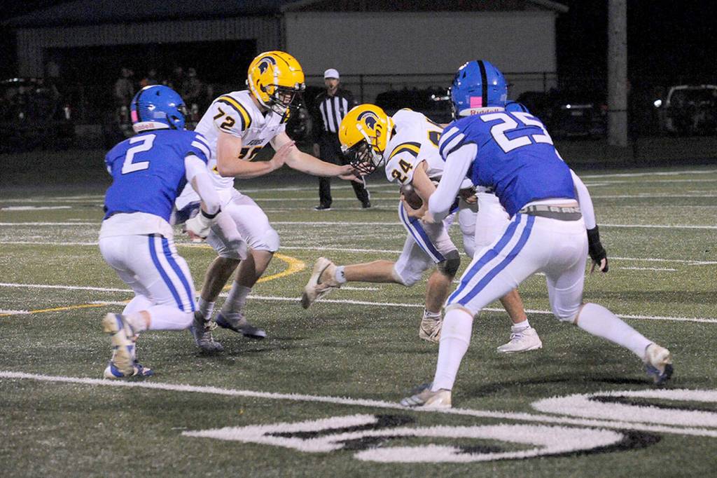 On other games Friday, the Clallam Bay Bruins improved to 4-0 by beating Mary M. Knight 51-0. The Bruins, playing six-man football, have yet to allow a point in four wins this season.