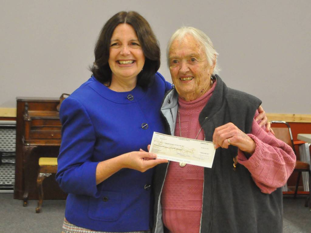 Ramponi presented the first donation to Sequim School District superintendent Regan Nickels at the Sequim Masonic Lodge’s coffee hour. Ramponi, sitting with her husband’s personalized lodge mug, said Louie was a longtime Mason.