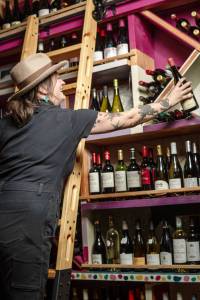 A cyclist rides by the 26-foot sloop that was dashed against the rocks along the Larry Scott Trail on Wednesday due to 30 mph winds from an atmospheric river storm buffeting the North Olympic Peninsula.