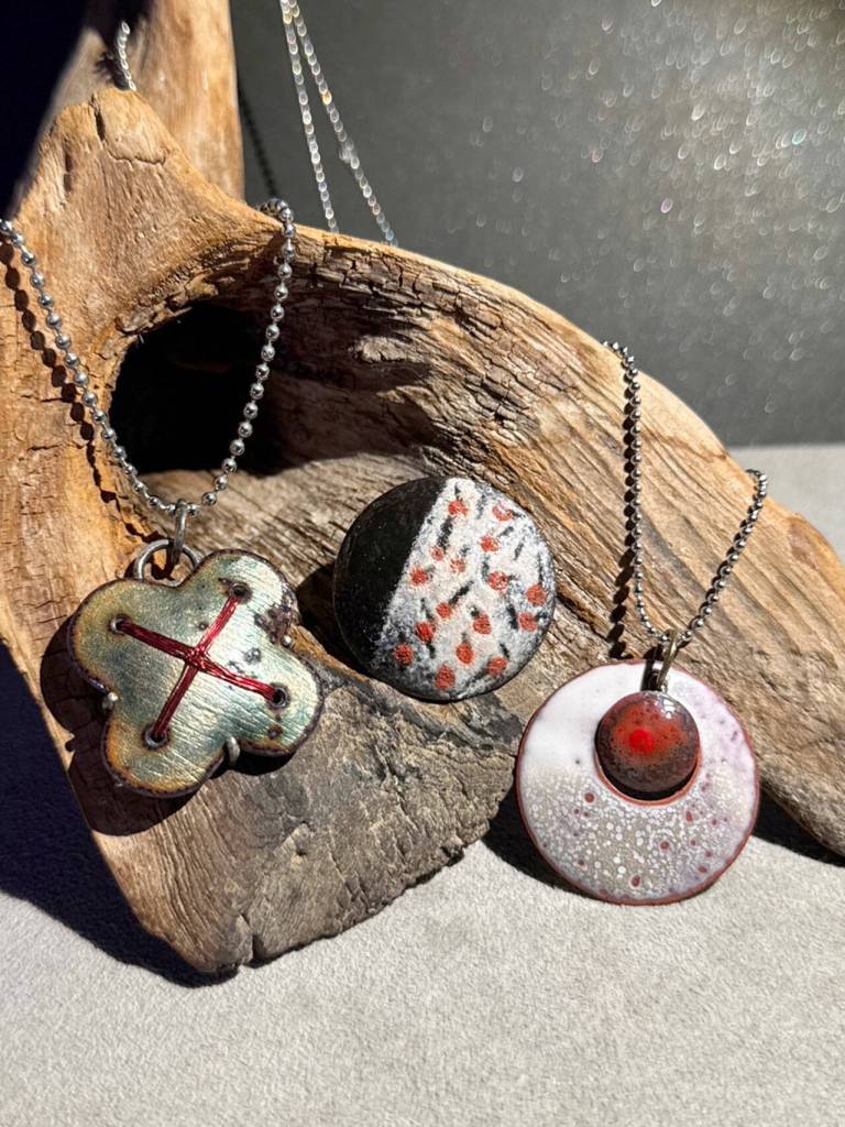 Maki earned a bachelor’s of fine arts in metal arts from the University of Washington. Her work incorporates traditional metal making techniques using gold, silver, copper and bronze to create intricate one-of-kind jewelry pieces. Her recent work explores the use of color using torch-fired enamels and interesting shapes to create jewelry that echoes narratives and symbols inspired by nature, according to a press release. She says she draws inspiration from the cultural symbolism those shapes represent.