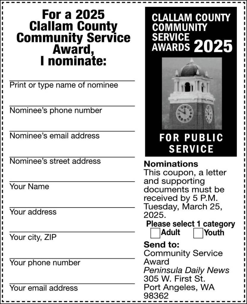 PORT ANGELES — Nominations for the 2025 Clallam County Community Service Awards are open.