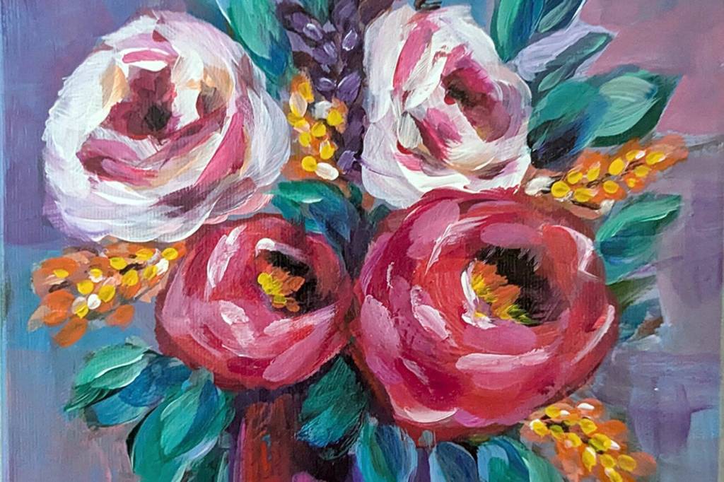“Cut Flowers,” an acrylic painting by Mary Rodgers, will be on display at the Port Ludlow Art League throughout March.