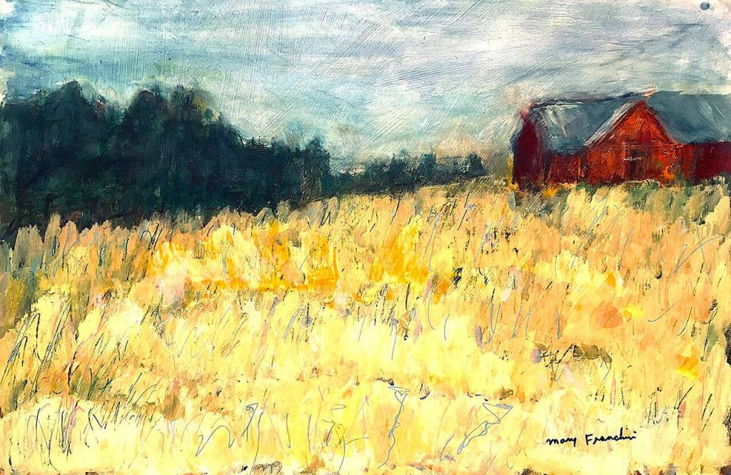 Mary Franchini’s “Old Red Barn” will be on exhibit at Blue Whole Gallery throughout July.
