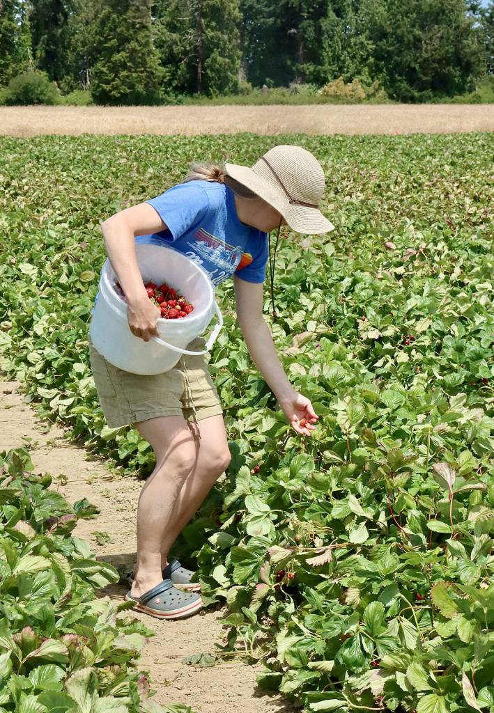 Mandy Miller of Port Angeles and other members of her family spent some time over the Fourth of July weekend picking eight pounds of strawberries at the Graysmarsh Farms north of Sequim. Raspberries will soon though reach their peak picking season, and both are available at Graysmarsh.