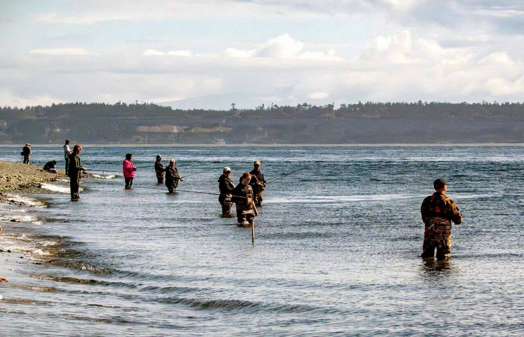 The pink salmon were running close enough to shore to attract at least dozen anglers to the beach at Fort Worden State Park in Port Townsend on Friday.