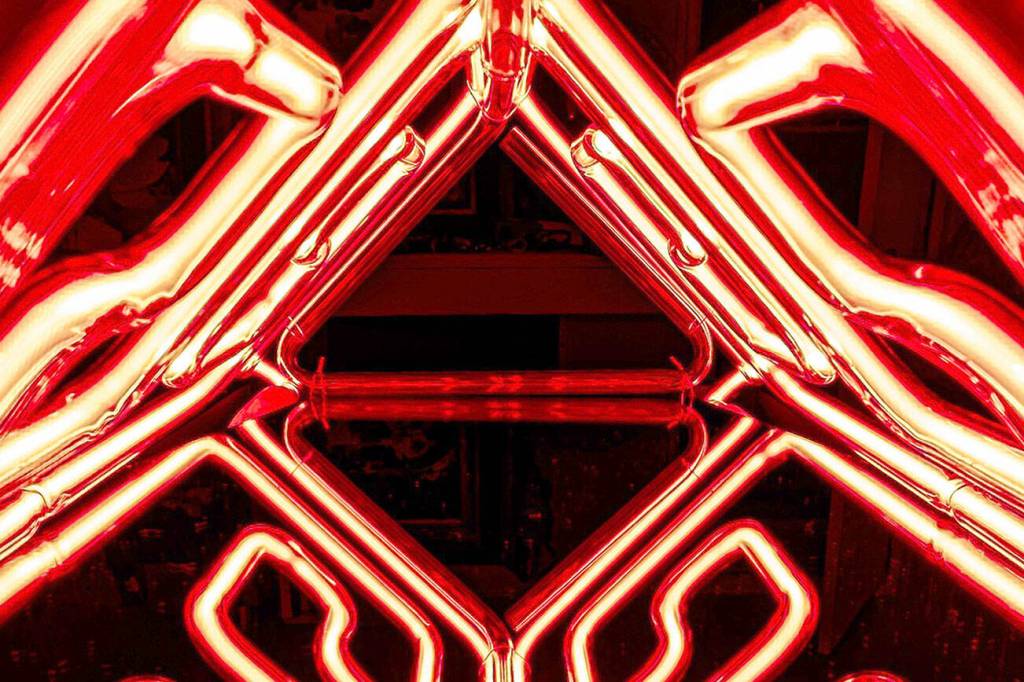 The exhibit celebrates color and humor using neon to explore light as language, material and mood.